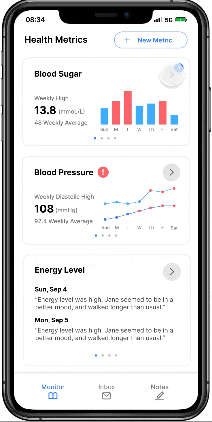 Solution: Being able to track multiple health metrics across time in an all-in-one application